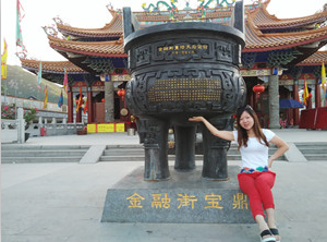 次日清晨,用過豐盛的自助早餐,女生們去了天後宮參拜媽祖和騎自行車。不知道媽祖是否管婚姻呢?