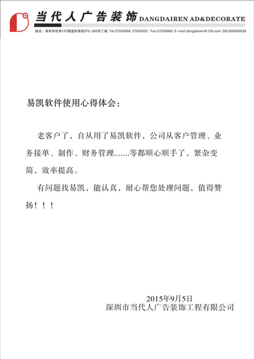 深圳當代人廣告 謝經理 2015年10月16日 瀏覽: 【字體: