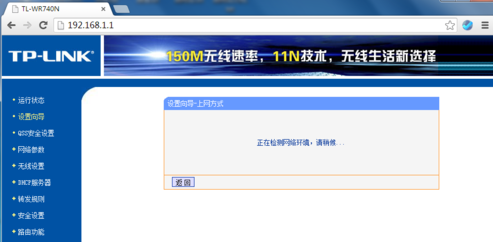 TP-LINK路由器會檢測當前的網絡環境,如下圖: