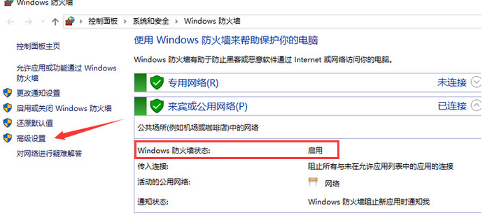 如果防火牆已經正常啟用,就點擊左邊的高級設置