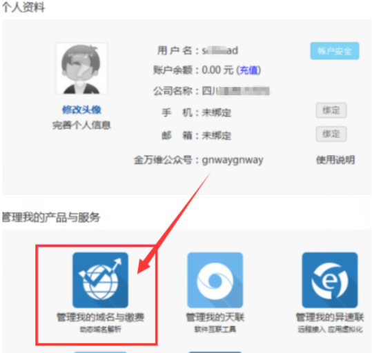 3、點擊:管理我的域名與繳費