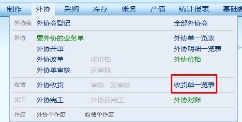 第一步:點擊外協收貨單一覽表,查看已開的收貨單。