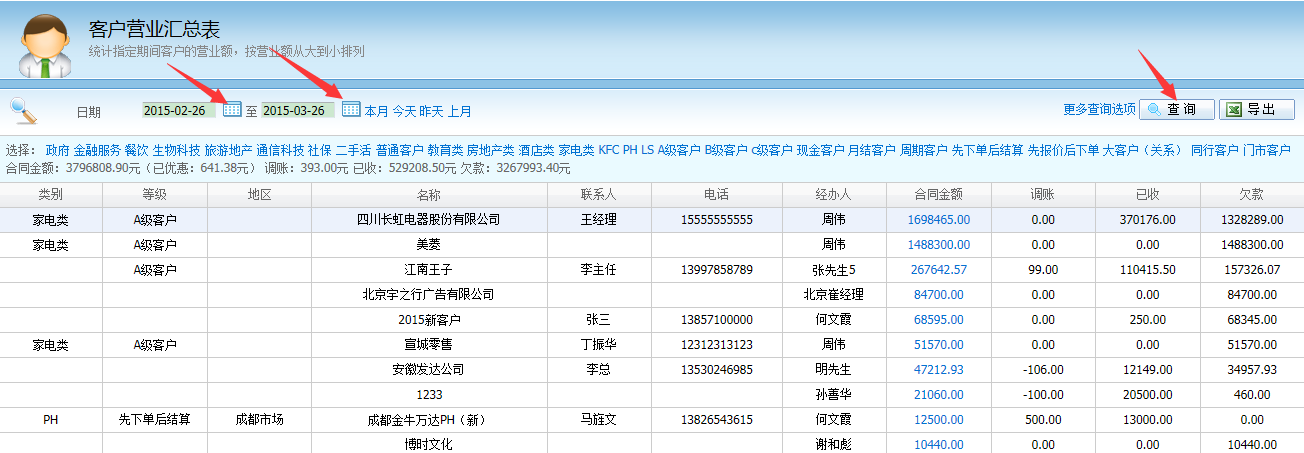答:在【客戶營業彙總表】可以選擇日期區間進行查詢
