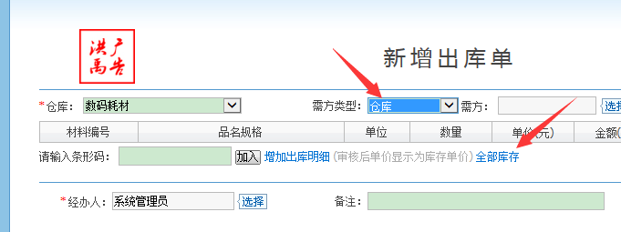 選擇好要清空的倉庫,選擇需方類型為倉庫(這樣就不會形成成本),並選擇全部庫存,保存並審核後就可以清零該倉庫的庫存了
