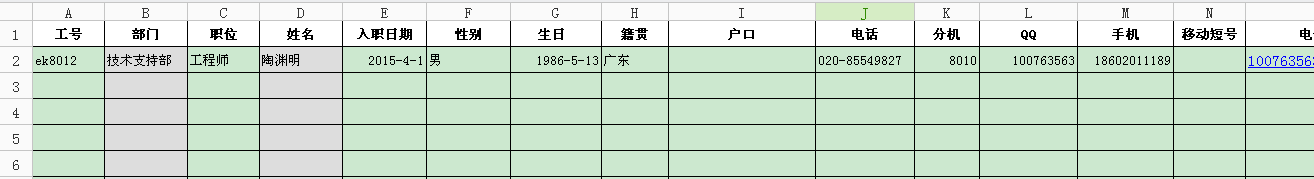 在模板中填好員工的各項資料 (日期的格式為:XXXX-XX-XX,如1988-08-12)