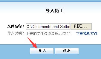 填好表格後保存,重新打開係統管理——導入員工,點擊"瀏覽",選中文件