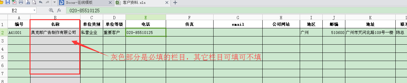 下載模板,填寫資料,其中灰色的部分是必填項目,其它列可填可不填