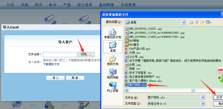 填好後保存,再打開係統管理——導入客戶點擊“瀏覽”