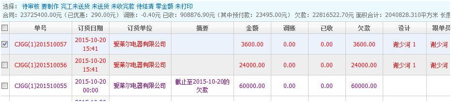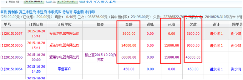 可以看到期初的欠款收到了回款15000元,其他正常下單的業務也收到回款了