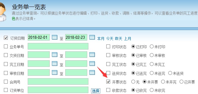 3、開了業務單後,在業務單一覽表就可以查看到開票狀態