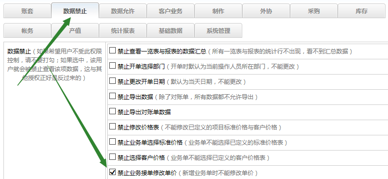 在zai定ding義yi好hao價jia格ge手shou冊ce後hou,如ru果guo不bu希xi望wang開kai單dan人ren員yuan修xiu改gai項xiang目mu單dan價jia,可ke以yi設she置zhi授shou權quan,開kai單dan從cong價jia格ge手shou冊ce或huo者zhe客ke戶hu價jia格ge選xuan擇ze項xiang目mu後hou禁jin止zhi修xiu改gai項xiang目mu單dan價jia,進jin入ru係xi統tong管guan理li--用戶權限,選擇要授權的員工的賬號,進入授權: