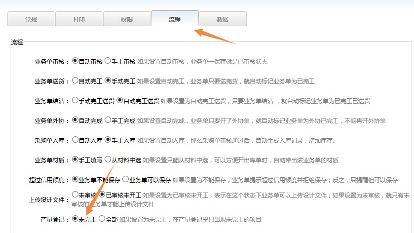 答:進入係統管理-係統配置-流程,將產量登記設置為隻有未完工的才可以登記就可以了