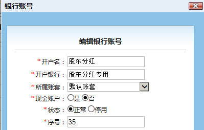 方法一:到基礎數據-銀行賬戶,設置一個“股東分紅”的銀行賬號: