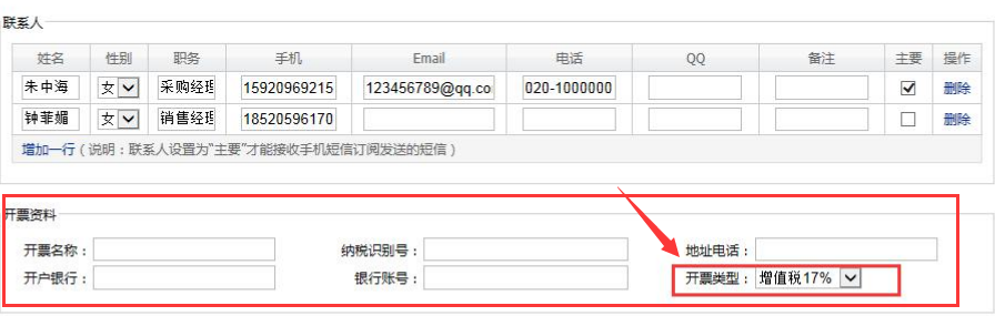 設置某個客戶下單時默認開票類型
