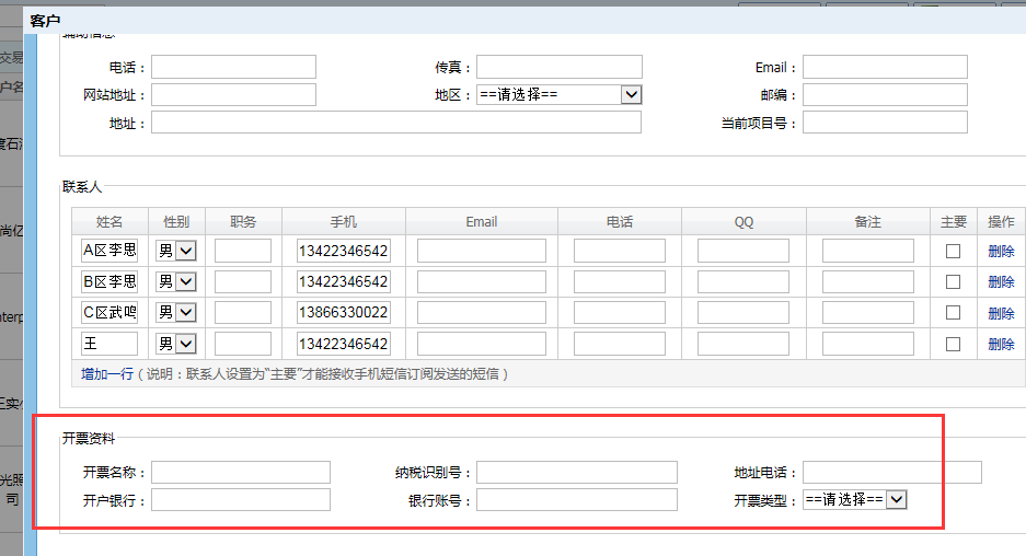 (注:客戶的稅號、開戶銀行等信息可以先錄入到客戶檔案裏麵,進入客戶業務-全部客戶,雙擊需要設置的客戶,設置客戶的默認開票信息,這樣在進行開票登記的時候選了客戶就會自動帶出客戶開票信息了)
