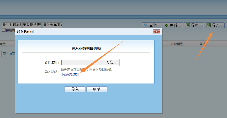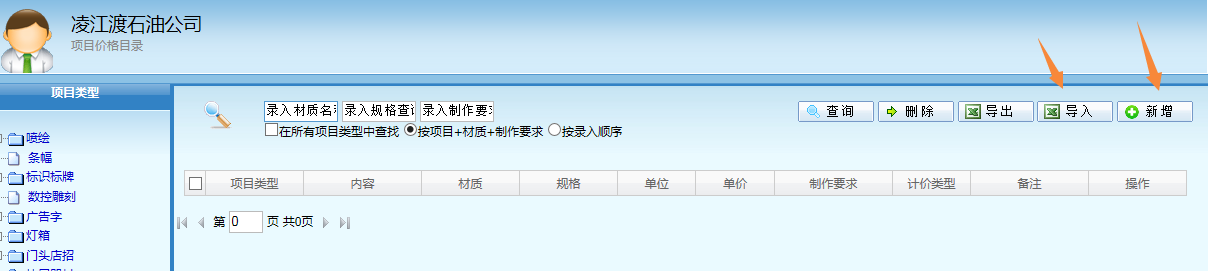 二、進入項目價格,可以直接新增,也可以通過導入的方式