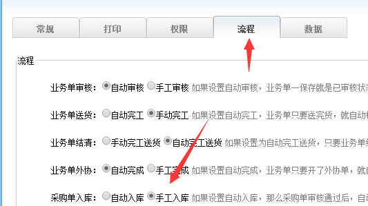 答:首先設置采購手動入庫,進入係統管理-係統配置-流程