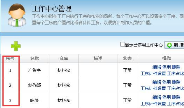 答:可以到【基礎數據----工作中心】,點擊編輯,給您的工作中心編序號。如下圖所示: