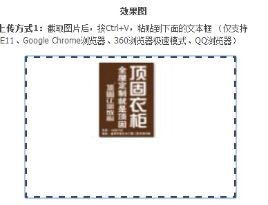 業務接單時,點擊效果圖,可以直接截取圖片後,按Ctrl+V,粘貼到下麵的文本框 (僅支持IE11、Google Chrome瀏覽器、360瀏覽器極速模式、QQ瀏覽器)
