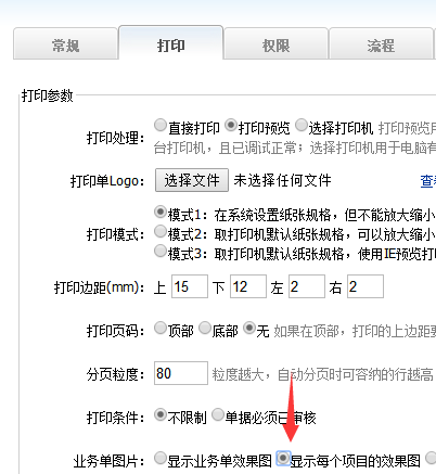 保存後打印業務單,也可以顯示項目效果圖,進入係統管理--係統配置--打印,設置打印顯示項目效果圖