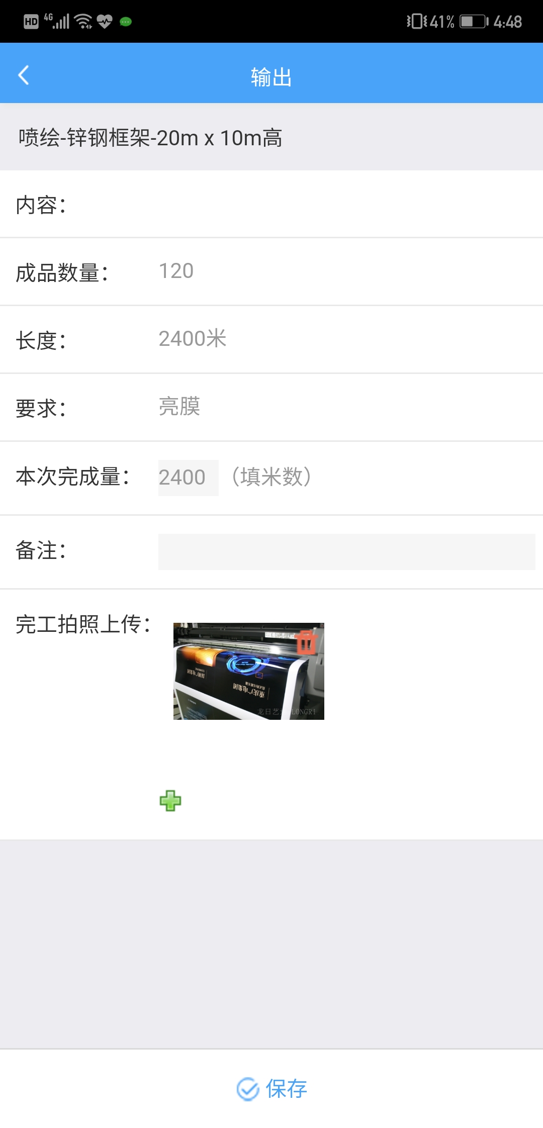 確認無誤之後保存。同理進行其他工序的產量登記和上傳完工圖。