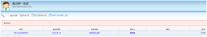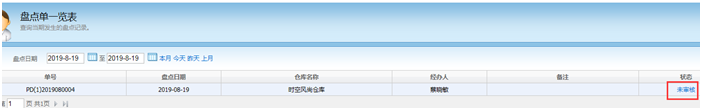 2.盤點單審核確認。進入庫存--盤點單一覽表,將其審核通過