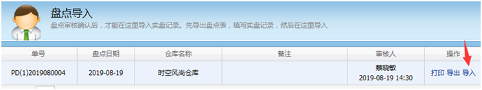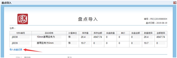 保存盤點表之後,再到庫存--盤點導入裏麵進行導入--保存