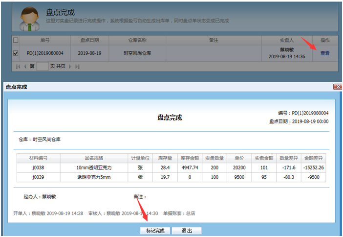 4.盤點完成。進入庫存--盤點完成,標記完成即可。