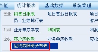 答:可以通過【統計報表】裏麵的【應收表賬齡分布表】查看的。