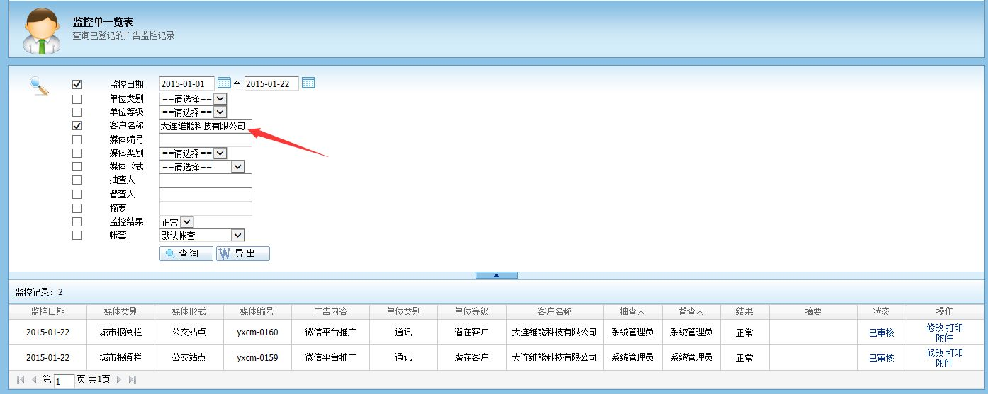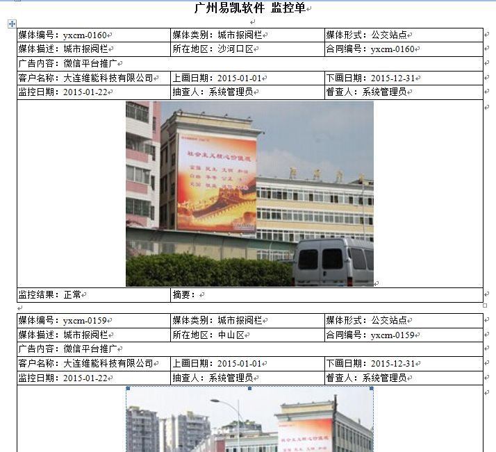 戶外版如何導出廣告監控表呢?V10.0的版本可以查詢某個客戶的廣告監控記錄,並導出word文檔,方便發給客戶