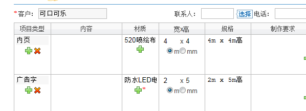例如在下麵這個單子裏有兩個製作項目,分別是"內頁”和“廣告字”