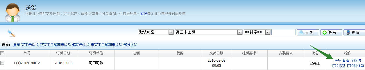 找到對應的業務單,點擊送貨,開送貨單,如下