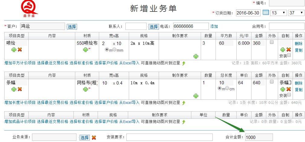 答: 先把單子上的業務項目開好,合計金額就是業務項目的金額總和,作為收稅的基數,如下圖: