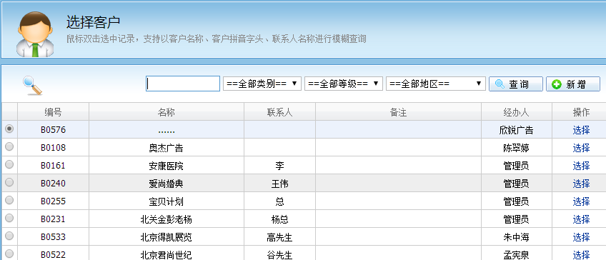 跳出選擇客戶的界麵: