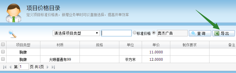 選擇需要導出客戶價格的客戶名稱,帶出該客戶已定義好的客戶價格,點擊導出即可: