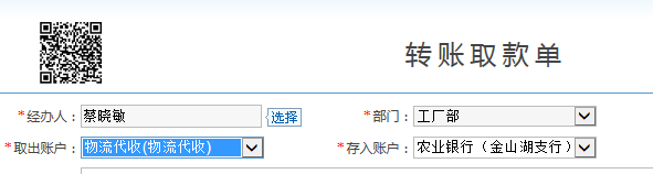 等到物流代收款之後將錢轉入我司賬戶時,再開一張轉賬取款單,將物流代收款轉入我司的銀行賬戶,進入賬務-轉賬取款單即可